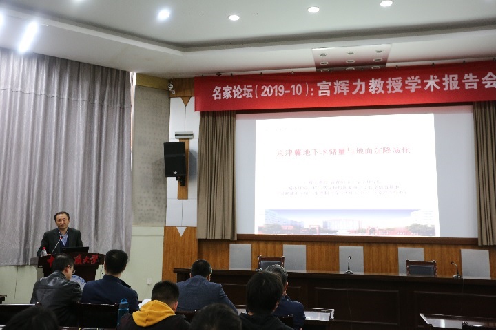 宫辉力,首都师范大学资源环境与旅游学院教授,曾任首都师范大学校长,主要从事地理信息系统和遥感的教学与研究。他的报告题目为《京津冀地下水储量与地面沉降演化》。以北京地铁系统为例,展示了北京地区的地面沉降演化与地下水储量等情况,以及他的团队在该领域的研究成果。