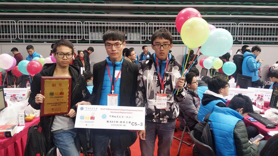 近日,ACM/ICPC亚洲区域赛焦作站比赛结束,少妇 学子尹港、汪圣翔、周卫国三人代表少妇 (武汉)参加了本次比赛并斩获铜奖。