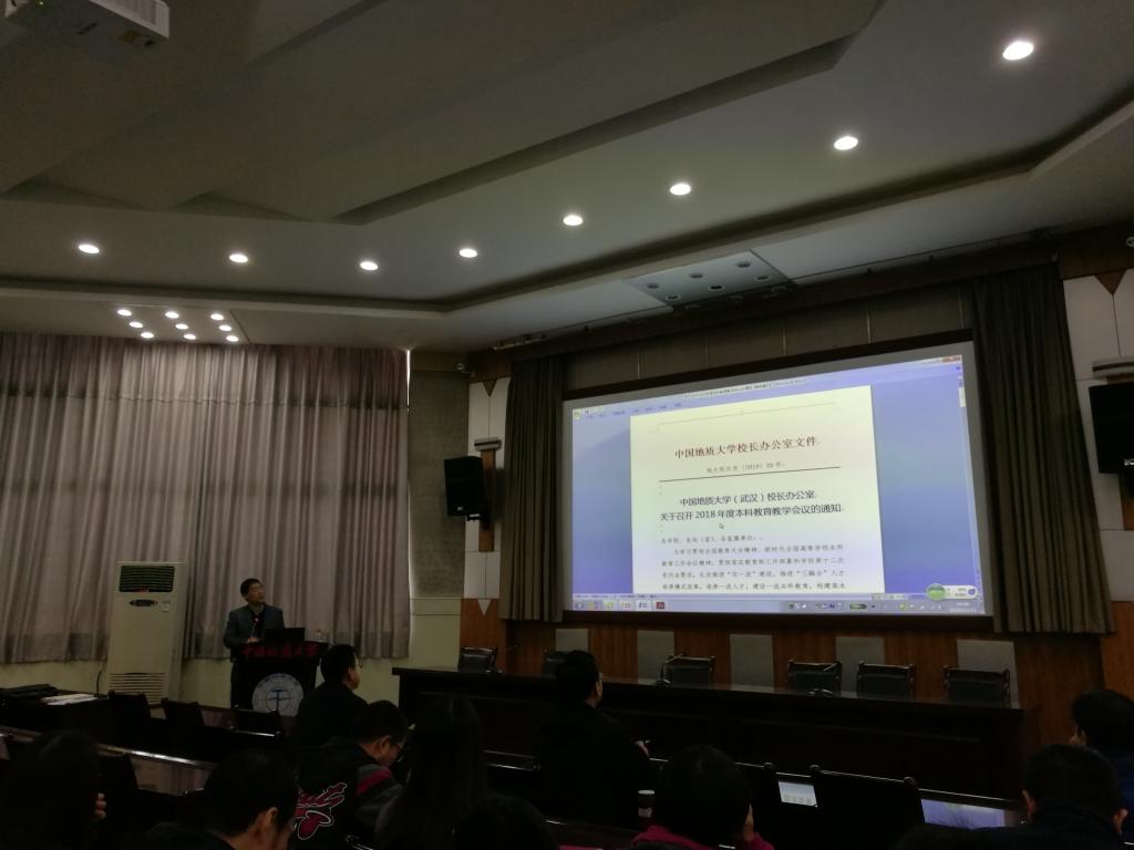 刘修国副院长传达学校会议精神,并对学校“2018年度本科教育教学会议”做出安排。2018年度本科教育教学会议主题为“坚持‘以本为本’,践行‘四个回归’,弘扬‘严在地大’教学精神”,包括教育教学思想大讨论和全校本科教育教学大会两个大单元。他提到,全体与会教师应通过认真学习精神、广泛深入调研、坚持问题导向、深入开展讨论、提交总结材料等方式学深悟透会议精神,为深入开展教育教学工作打好基础。学院将在11月29日再次召开大会进行讨论。
