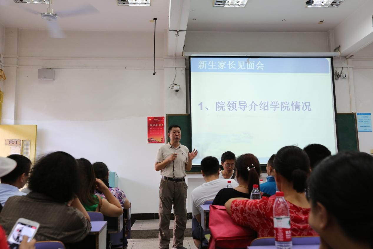 学院党委书记许德华讲话。他强调,大学生,尤其是大一新生要做好学业规划,调整好初入大学的适应期,并希望家长时时关注学生的各方面动态,和学校之间达成良性沟通渠道,共同携手培养学生成人成才。