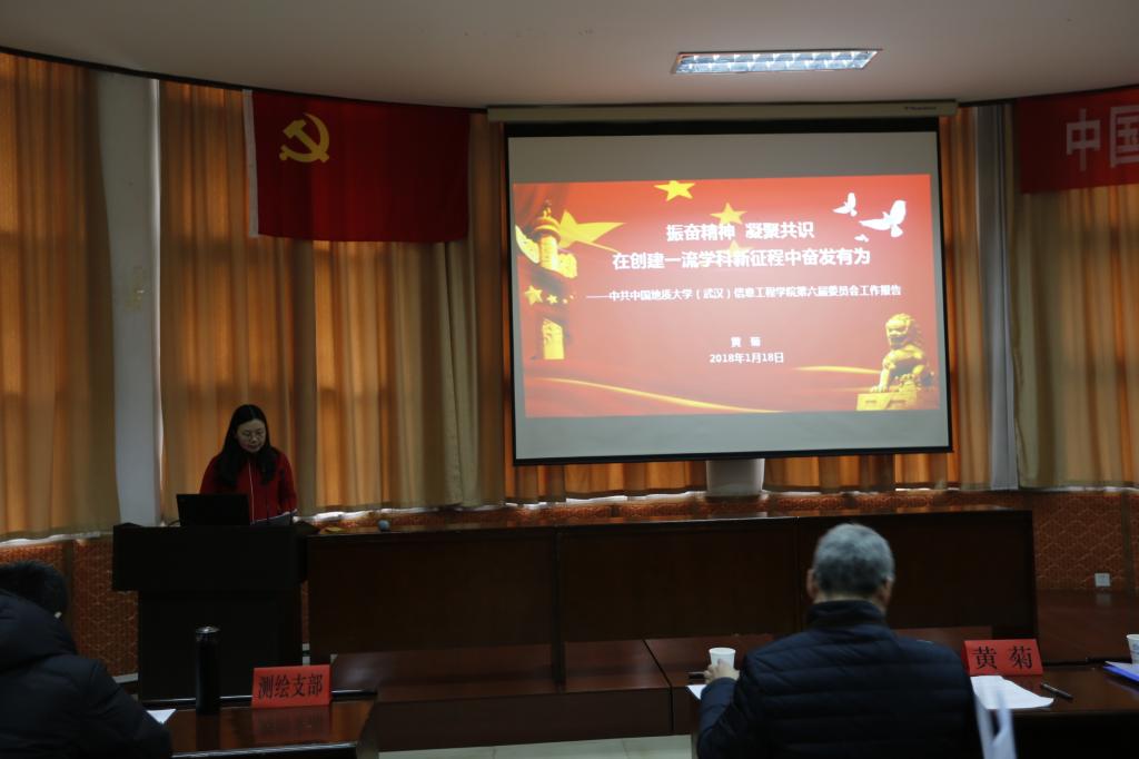 学院党委书记黄菊同志代表第六届委员会做了题为《振奋精神 凝聚共识 在创建一流学科新征程中奋发有为》的报告,报告首先回顾了第六次党代会以来的工作主题教育、基层组织建设、党员先锋模范作用发挥、思想政治工作特色、党风廉政建设、统战以及群团组织工作七个方面回顾了学院党委在过去四年扎实推动党建和思想政治工作上新台阶的努力。其次,从高素质教师队伍形成、专业建设推进、人才培养质量、科研平台和学科建设、科学技术创新和社会服务能力以及学术交流、国际合作能力提升方面展示了学院内涵式发展取得的显著进步。报告分析了学院发展面临的形势和任务,进一步明确了发展形势和奋斗目标,并指出了学院党委今后四年的工作重点,强调:加强基层党组织和党员队伍建设,增强党组织的创造力、凝聚力和战斗力;加强领导班子与干部队伍建设,提升推动学科发展的谋划力和执行力;加强和改进学院思想政治工作,落实立德树人根本任务;加强学院文化建设,营造和谐育人环境。