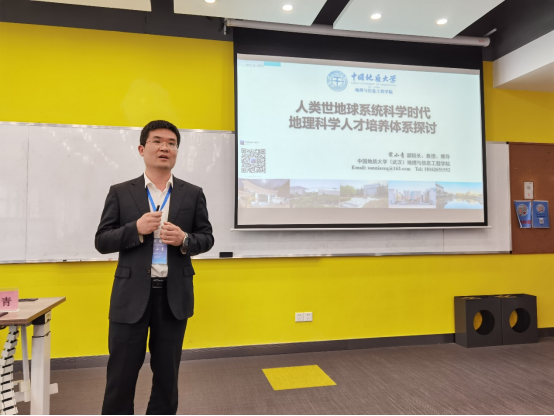 在地理学人才培养体系分论坛上,副院长宋小青以“人类世地球系统科学时代地理科学专业人才培养体系探讨”为题进行了汇报交流。他指出,在人类世地球系统科学时代,坚持地理学“人-地”双向耦合核心领域,构建目标-能力体系、师资-团队体系、课程-资源体系,坚持野外基地化育人、师资团队式育人、科教融合育人,对于地理科学本科专业人才培养具有重要意义。同时,他介绍了少妇