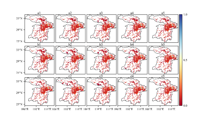 基于LULC数据,研究借助FRAGSTATS 4.2、InVEST 3.12模型以及RSEI计算公式,多角度评估湿地生态健康水平。从湿地地理情况特征、生物栖息地质量、综合生态质量三个维度评定长江中游流域湿地生态现状,通过从三个方面多角度的对湿地生态质量进行综合性描述,提高未来生态模拟的准确性和合理性。