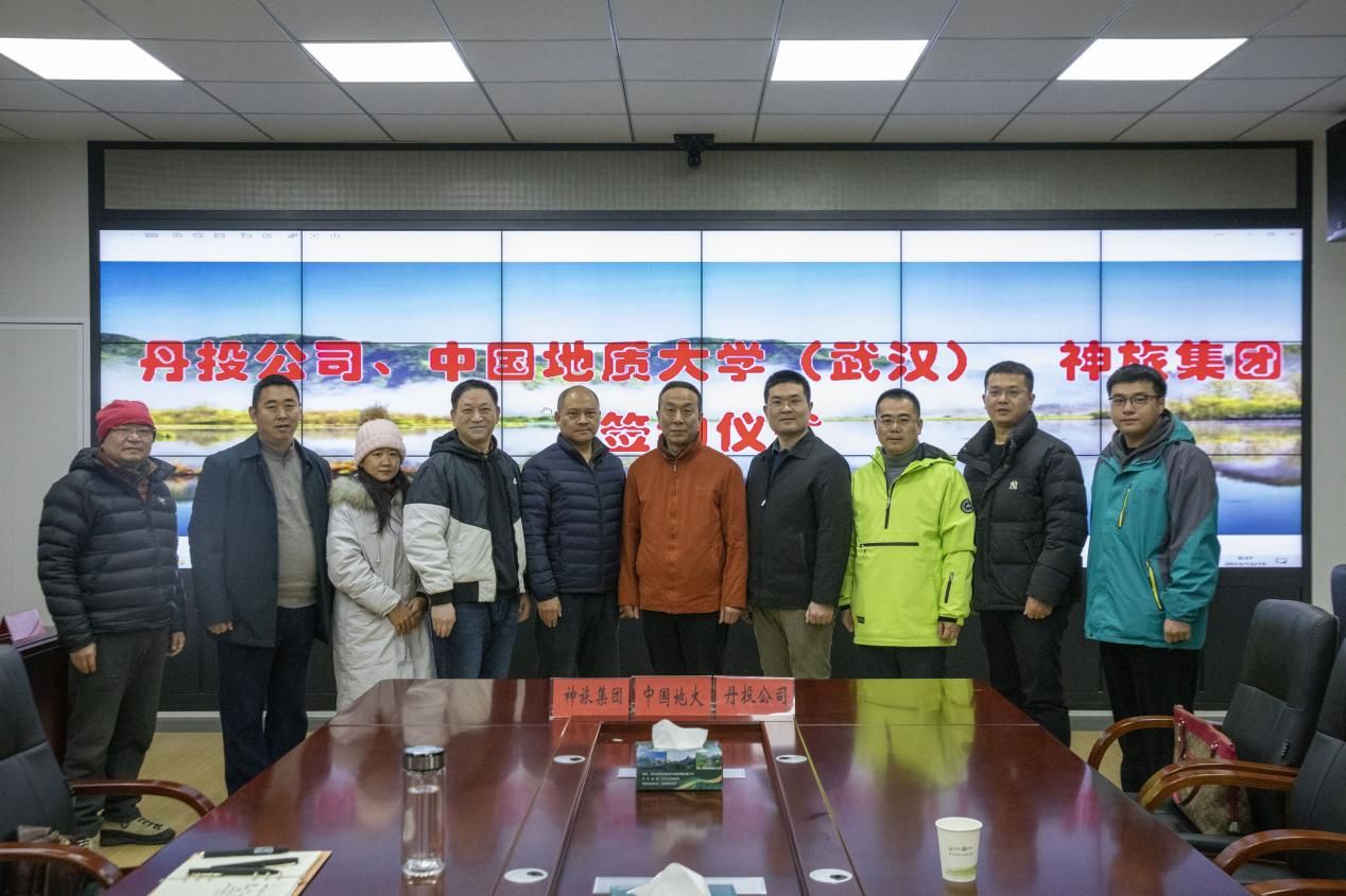 与湖北神农旅游投资集团有限公司在神农架神旅集团209会议室签署科普研究战略合作协议。神农架国家公园管理局党委委员、总工程师薛红,神旅集团党委书记、董事长孙俊,神旅集团党委委员、副总经理杨创祎,神旅集团副总经理高峰,少妇