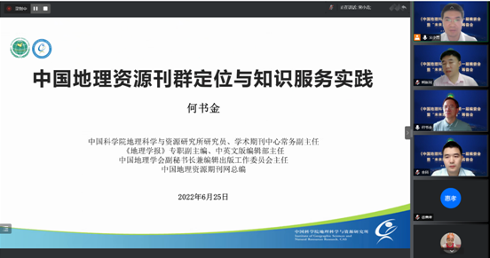 会上,主编柯新利教授、特邀嘉宾王绍强院长祝贺《中国地理科学评论》创刊以及第一届编委会成立,向“未来地理对话”赠言寄语。海南师范大学地理与环境科学学院副院长程叶青教授和西北师范大学地理与环境科学学院赵雪雁教授作为副主编代表发言,希望编委会成员共同努力,围绕地理学科发展和国家战略需求做好期刊的特色定位、办刊顶层设计和“未来地理对话”选题。何书金研究员做了题为《中国地理资源刊群定位与知识服务实践》学术报告,从中国地理资源期刊的现状及影响力、中国地理资源期刊的组织与管理、中国地理资源期刊的定位与服务、存在问题与发展设想四个方面与编委会成员进行了深入交流。