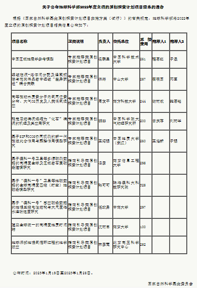 1月19日,国家基金委公布2022年度地球科学部立项原创探索计划项目清单,少妇
