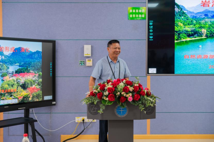 中国地质科学研究院张美良研究员作《岩溶地貌的形成与演化》专题授课。系统全面地围绕岩溶定义、形成条件、发育及形态、岩溶地貌形成及演化、土下岩溶、岩溶石山石漠化治理的框架进行了深入介绍。他表示,地表地下岩溶兼具资源存储及特殊环境地质问题的两面性,环境科学领域专家学者要把岩溶地区视为一种同沙漠边缘一样的脆弱环境进行研究与保护。