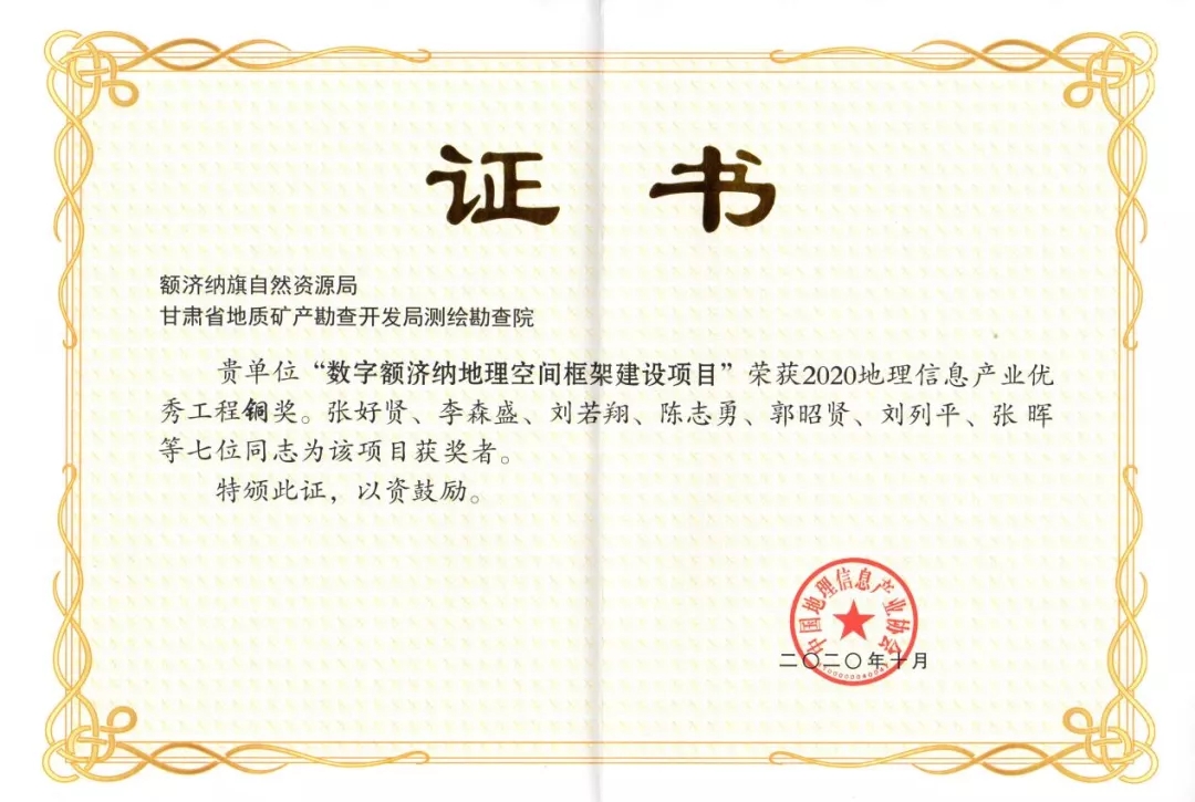 张好贤团队获得中国地理信息产业协会奖状