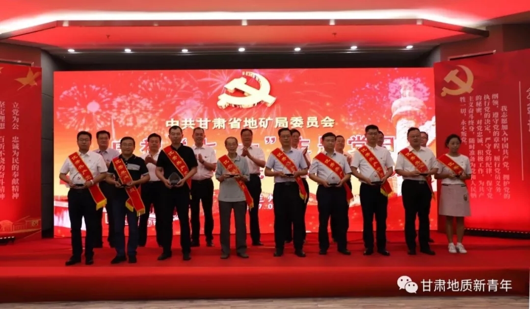 张好贤(前排左一)获得省地矿局“优秀共产党员”称号