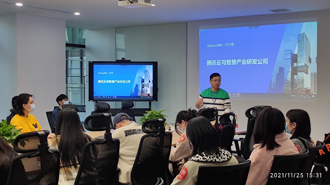 积极与腾讯云智对接,举办了第二期生涯体验周暨企业开放日活动。2021年11月25日,学院兼职辅导员张巍同47位同学,前往腾讯云智参观学习。