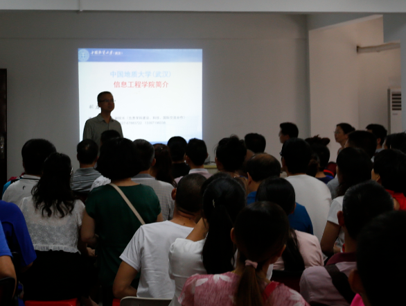 首先,党委副书记许德华老师代表信工学院全体教职工对到场家长表示热烈欢迎并介绍了参加见面会的学院领导及其具体分管的相关工作。然后,由分管学科建设的胡友健副院长向新生家长详细介绍了信工学院教学科研支撑条件以及少妇