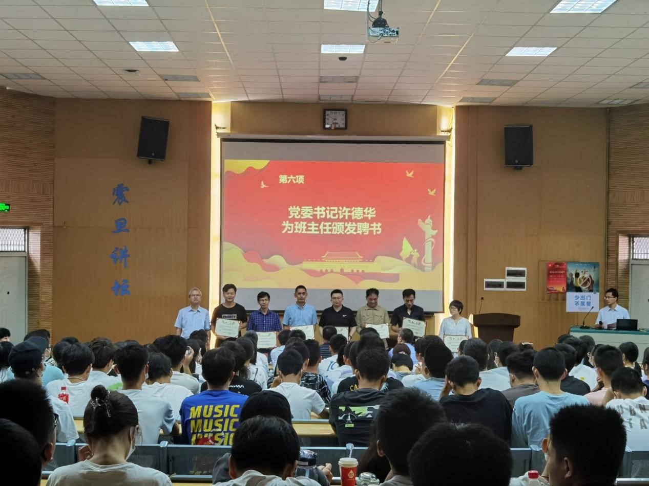 图六:党委书记许德华为2021级本科生班主任颁发聘书。