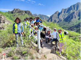 周口店实习队在队长季军良和杨欢、温彦平、赵国松等老师的带领下,2020级地理科学专业42名本科生顺利完成了第4-8条野外路线的实习。路线4是八角寨-栓马桩中元古界和新元古界地层与沉积环境;路线5是一渡-十渡雾迷山组褶皱&断裂构造及河流地貌;路线6是韩村河村发展历史、产业规划与党建工作等;路线7是黄院新元古界和下古生界地层与沉积环境;路线8是官地-羊屎沟变质杂岩-盖层岩性及接触关系。这一阶段实习区气温依旧异常炎热,师生们顶着近四十度的高温以饱满的热情高质量地完成了每条路线的教学内容。相比实习初期,同学们适应高温的能力和耐力进一步增强,野外技能更加熟练,信手剖面图绘制、各种地质现象的素描、野簿记录等方面均有很大进步。7月10日室内整理阶段,老师们进一步给学生们讲解了实测剖面的方法和注意事项,并进行了实操演练,为后续实测剖面的顺利开展打好了基础。