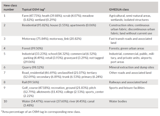 图 2 OSM与参考土地利用数据(典型)类别的对应关系