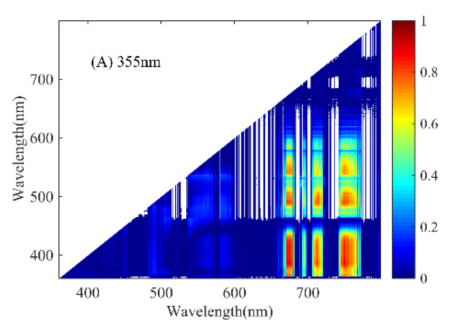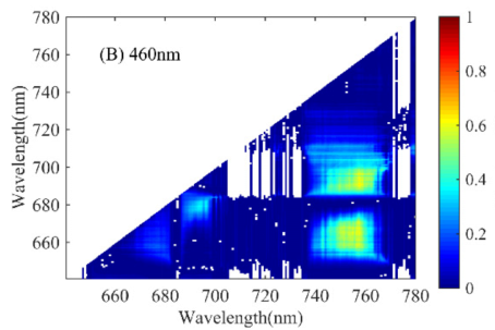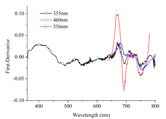 图1. 不同激发光波长下计算获得的水稻叶片一阶荧光光谱