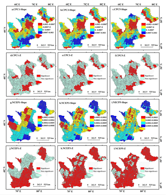 中亚是北半球典型的干旱区,包含全球80%以上面积的温带沙漠,坐落在欧亚大陆的中心区域,是欧洲和亚洲往来的交通要道,在亚洲和欧洲社会和经济发展的重要角色。径流的主要水源来源于冰雪融水。近些年来,由于气候变化和快速的社会经济的变化导致前所未有生态系统波动,并且导致灌溉用水的增加及中亚水塔效应也在不断减弱。然而,之前的研究很少涉及中亚降水变化特征的研究,更加缺少降水变化驱动因子的分析研究。因为该区域缺少站点监测数据,本项研究基于格点数据(CPC和NCEP)和三种空间插值方法对中亚降水集中度(日尺度集中度和月尺度集中度)进行研究和分析,并且结合遥相关指数分析降水集中度变化的驱动因子。