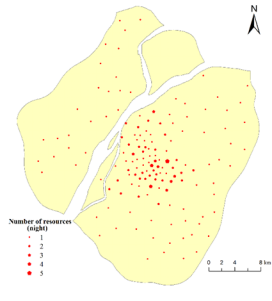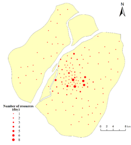 考虑到城市火灾风险的动态性,本研究进一步采用动态资源配置来提高消防资源的利用率。具体上,常规消防站设施较为固定,而微型消防站因为场所要求不高,资源配置较为灵活。因此,我们选择对微型消防站进行资源动态分配。为预测日间和夜间不同时段的消防需求,我们分别使用随机森林(RF, random forest)和地理加权回归(GWR,geographical weighted regression)探测不同时间段的火灾风险差异(图4)。然后,以资源利用最大化和运输成本最小化为目标,提出了在一定成本下的动态资源分配方案(图5)。根据分析结果,该模型可以根据不同的需求对消防设施进行动态分配,提高系统的整体效益和实用价值。