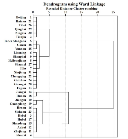 图1 31个省级行政区的聚类谱系图