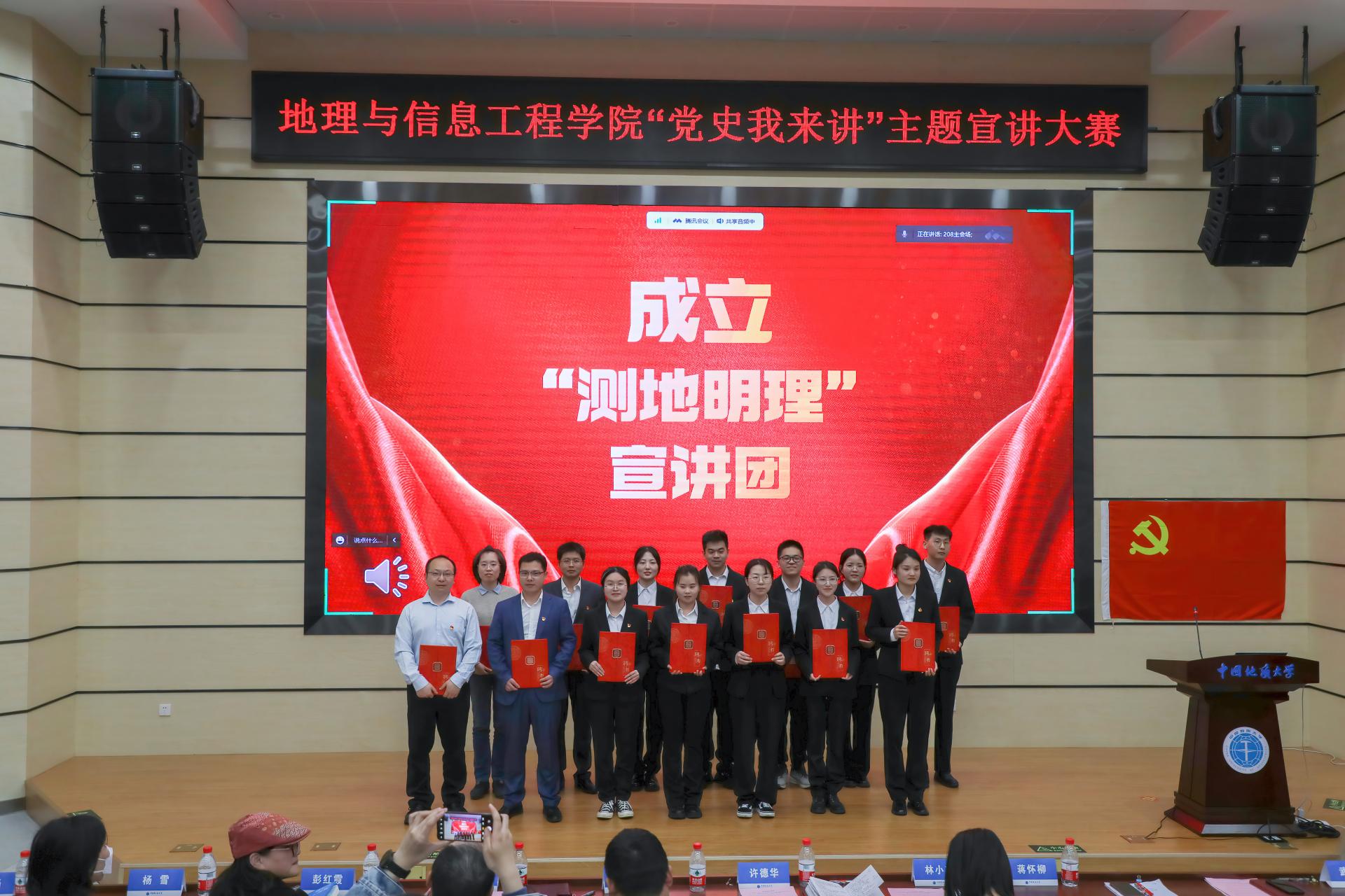 “测地明理”宣讲团宣布正式成立。宣讲团将成为学生成长成才的有效平台,为学生素质能力提升提供有力支撑,为培养堪当民族复兴大任的时代新人保驾护航。蒋怀柳、武彦斌为宣讲团成员颁发了聘书。