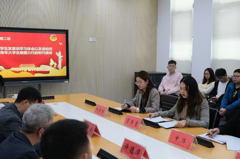本研团学骨干结合自己的党团工作和学习,交流分享个人的理解与感悟。研究生会申伟说,作为一名研究生,在科研学习中,一方面应“脚踏实地”,打牢学科基础;也应“仰望星空”,不断在本专业创新。团委窦瑾童表示,青年人应与时代同向同行,让青春在不懈奋斗中绽放青春之花。学生会崔恒认为,新时代的青年成长在全新的时空,应当知行合一,履行肩负的责任。团委锐思新闻宣传中心杜奕恒认为,当代大学生要了解历史、了解国情,践行青年爱国力行的时代使命,做社会主义的合格建设者和可靠接班人。学生会组织联络部刘九溥说,当代大学生应学会用社会主义价值观武装头脑,着力加强社会主义核心价值观内化于心、外化于行。研究生会文娱部孙鑫认为,我们要珍惜新时代赋予我们的美好生活,肩负使命,逐步实现自己的人生价值。学生干部们也对自己近一年的工作进行了总结汇报,同时提出了自身工作的不足之处,在接下来的工作学习中将继续努力,更好的为学院同学服务。