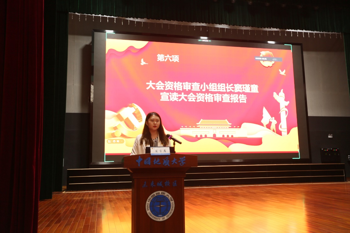 窦瑾童作大会资格审查报告;宣读并通过《团委会候选人建议名单》、《学委会候选人建议名单》、《总监票人、监票人名单》和《总计票人、计票人名单》。