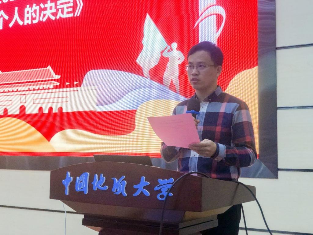 学院团委副书记赵晓振带领与会师生一起学习习近平总书记视察清华大学发表的重要讲话精神。他鼓励本科生要以学业为重,用知识武装自己;鼓励研究生做好科研任务,为以后的学术科研之路打下坚实的基础。