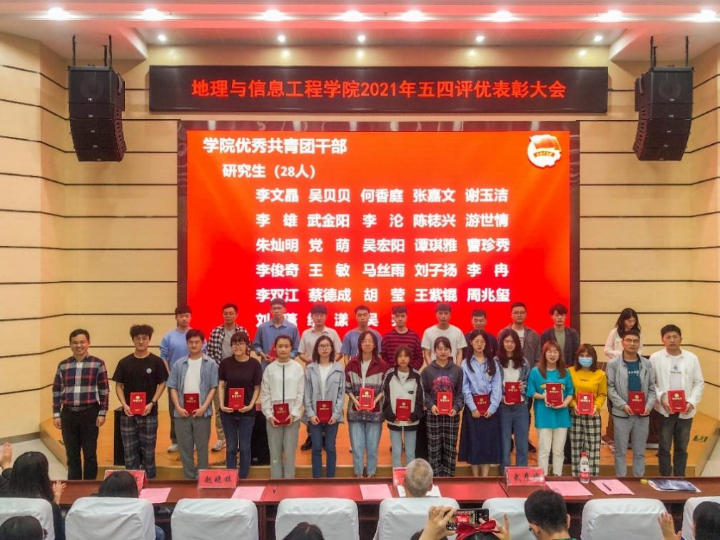 党委副书记武彦斌宣读《关于表彰2021年度五四先进集体及优秀个人的决定》后,由学院党委书记许德华、党委副书记武彦斌和辅导员老师为院级受表彰集体及获奖个人颁发了获奖证书。