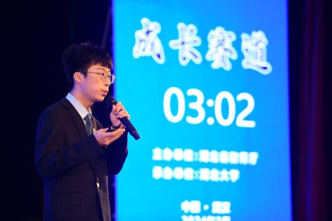 决赛现场,张鹏以《为大地“把脉”,向地球“听诊”,做地震安全“守夜人”》为题,从西部地区地震灾情引入,生动讲述了自己“在灾难中磨砺,在希望中前行”的成长故事,表达了对于地震监测系统的建设憧憬以及立志成为一名地震局地震监测预警人员的梦想,展现了地大学子积极向上的良好精神风貌。