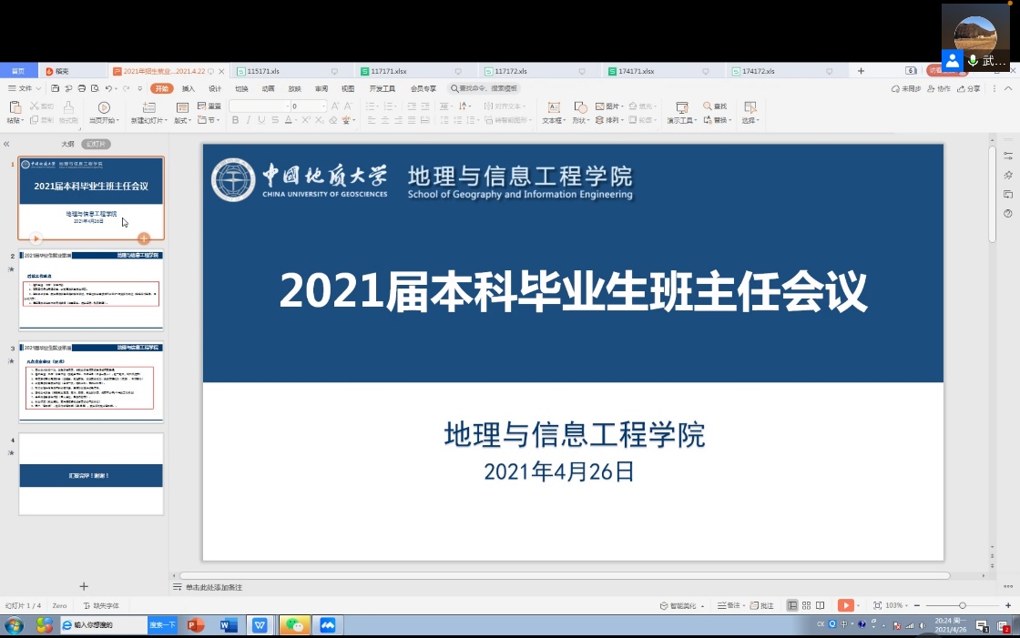 26日晚,地信学院召开2021届本科毕业生班主任会议